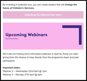 The primary purpose of this website is to provide information and updates on the programme to staff of the 19 contributing authorities and to make this accessible to anyone who does business with them or an interest in improving Children’s Services.