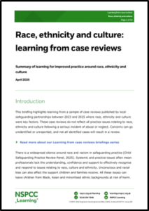 On 1 April NSPCC published Race, ethnicity and culture: learning from case reviews – Summary of learning for improved practice around race, ethnicity and culture