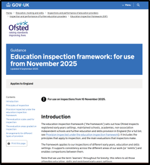 On 9 September Ofsted published a new EIF for use from 10 November 2025