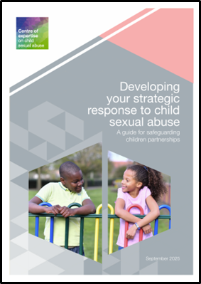 On 25 September 2025 the Centre of expertise on child sexual abuse published Developing your strategic response to child sexual abuse – A guide for safeguarding children partnerships