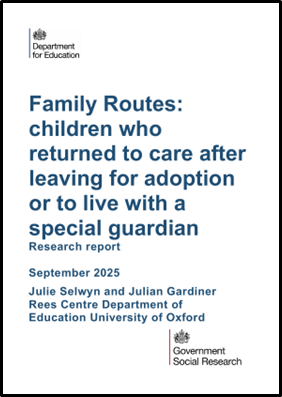 On 25 September DfE published a research report, Family Routes: children who returned to care after leaving for adoption or to live with a special guardian