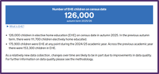 On January 15 DfE published data reported by local authorities on children of compulsory school age in elective home education (EHE) in England.