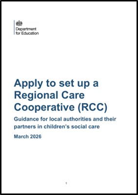 On 26 March DfE published Guidance for LAs and others setting up a Regional Care Cooperative