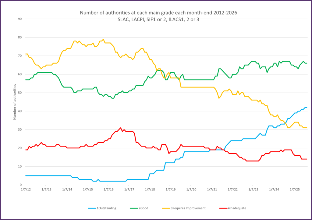 | SIF2 | 24 November 2015 | 11 June 2018 | 21 reports published for authorities graded Inadequate at SIF1 |